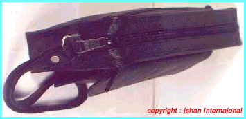 CODE NO. I / 0 30 Item : PouchBrand : Buyer can give their own brand (if any). Make : NDM Cowhide Leather, Size : 23cm. X 24cm., Colour : Black, Weight : 0.250gm. Capacity: Warranty : Life time, Feature : Hand made in India expert craftsmen. Items made from